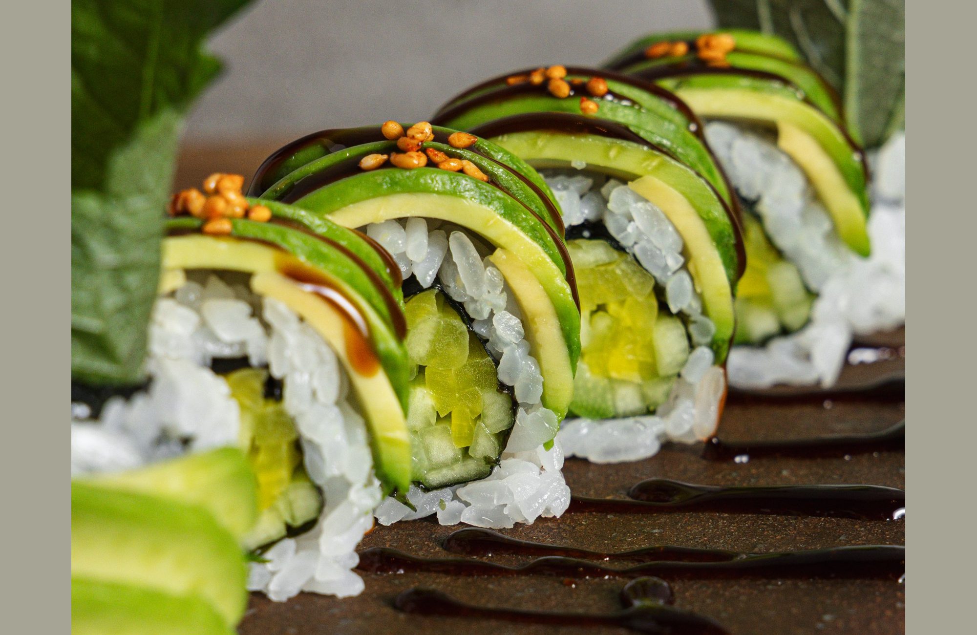 В нем — два варианта овощных роллов: без риса, завернутых в дайкон с авокадо, шиитаке и васаби «Кизами», или с диким рисом, томатами, авокадо, спаржей и манго. Легкая закуска — карпаччо из кабачков с маринованными артишоками. Гратен из свеклы сочетает черную смородину, орехи и тыквенные семечки, балансируя между сладостью и легкой солоноватостью.