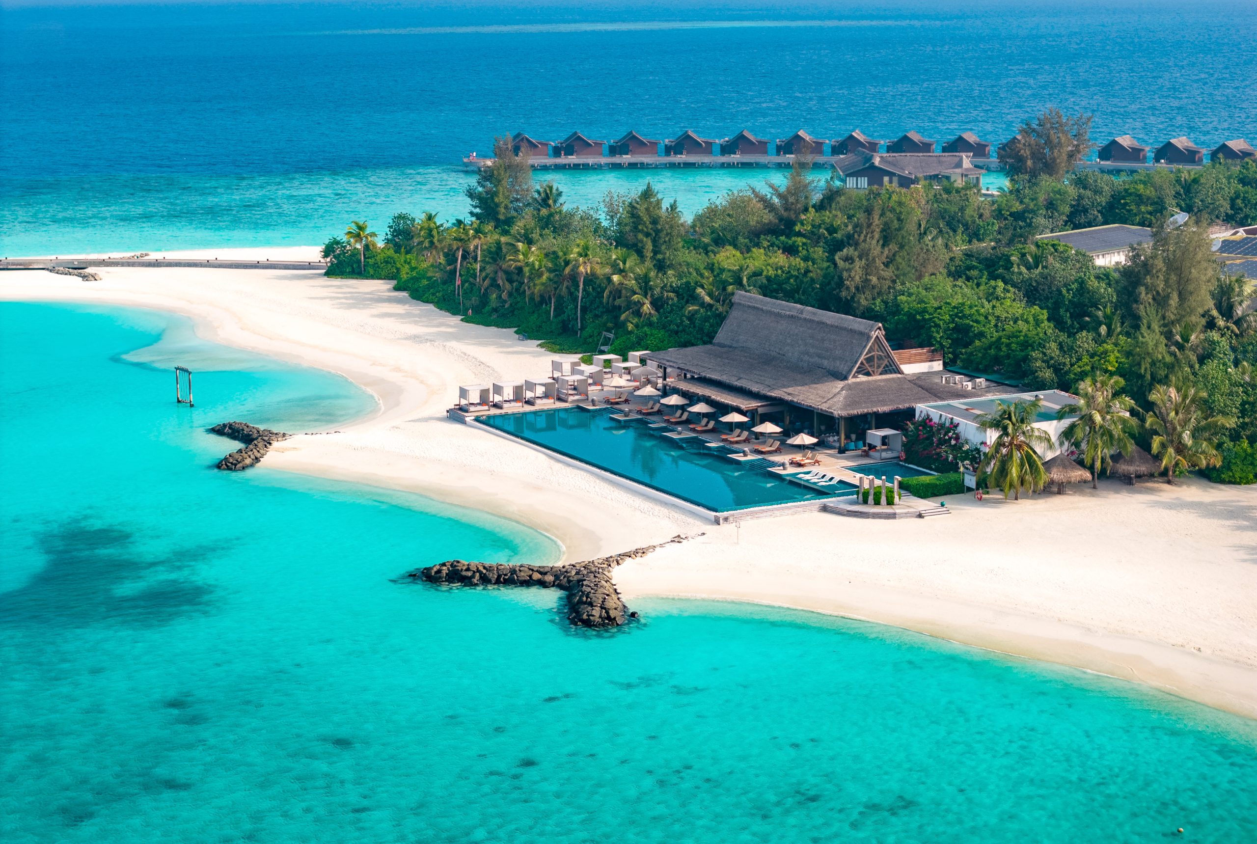 Курорт расположен в 25 минутах полета на гидросамолете от Мале. В инфраструктуре: виллы над водой и на берегу (вместимость 2–5 человек), четыре ресторана, бары, спа-центр Navasana, дайвинг-центры PADI и SSI. Домашний риф с тропическими рыбами доступен для снорклинга прямо с пляжа; в акватории атолла водятся скаты манта и китовые акулы.